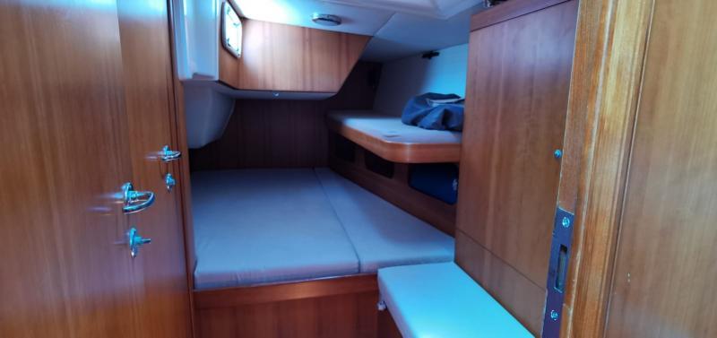 Le cabine del Comet 45S sono davvero ariose: a poppa sono gemelle e hanno due letti comodi, un notevole calpestio libero dal pozzetto e due armadi veramente ampi. A prua vi è la cabina armatoriale, dotata di letto a murata e completa di bagno con box doccia separato.
