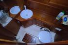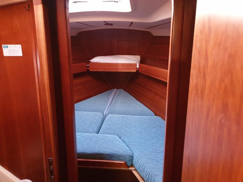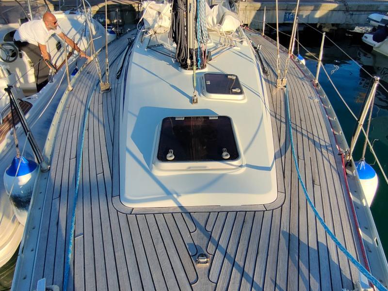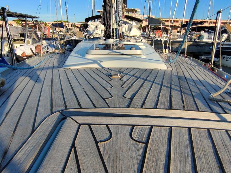 Le linee d’acqua tese a sviluppare comfort di navigazione ed offrire spazi interni adeguati. Anche le appendici del Comet 38 sono attualissime e garantiscono una buona portanza anche alle basse velocità, avendo corde e profili abbastanza accentuati. L’attrezzatura di coperta è molto completa con winch Harken, il paino velico è generoso ed attuale con crocette acquartierate che lo rendono semplice nella gestione garantendone una maggiore stabilità. il timone a ruota è di dimensioni notevoli e permette di stare seduti sopravento sulla tavola paramare, per una buona visione a prua anche con la barca sbandata. Soprattutto la costruzione è solidissima con strutture maggiorate già per un 50′ come i perni e le piastre d’acciaio della chiglia e le lande.
