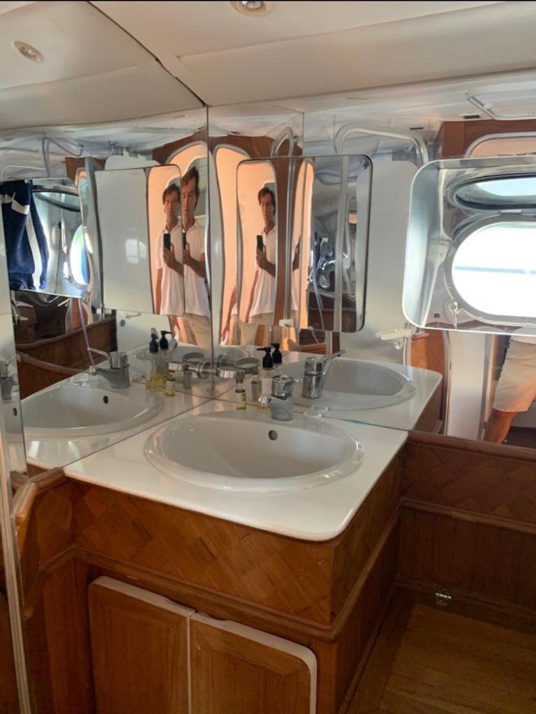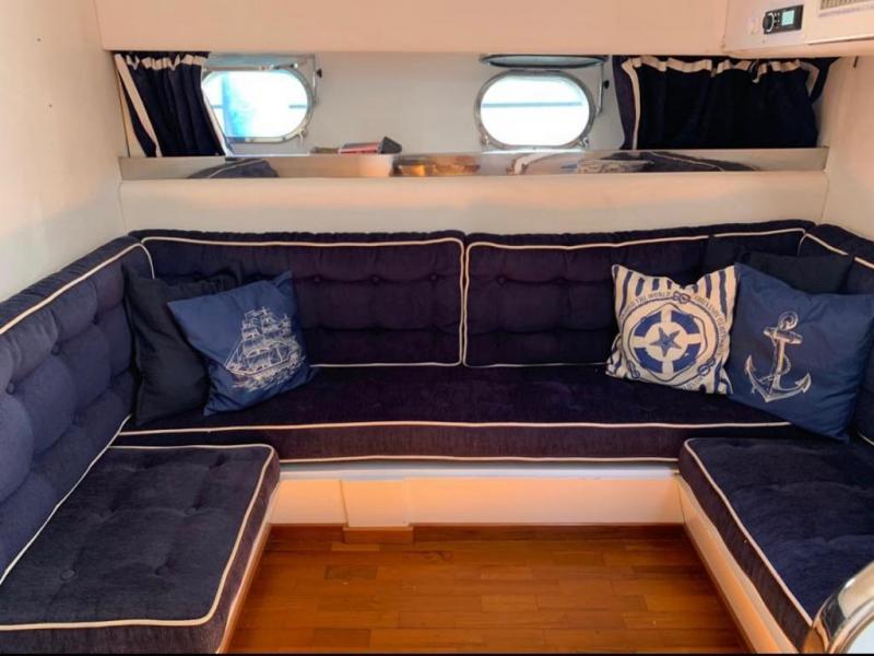Il BAIA 43 è nella versione Force One, ancora più veloce, con trasmissione Arneson ed eliche trimmabili multipala. Tra gli interventi di manutenzione più recenti, la manutenzione ai motori CATERPILLAR elettronici da 510 CV (installati nel 2003 e revisionati nel 2018), che rendono la barca estremamente più veloce rispetto alla motorizzazione originale, e l’installazione di nuove cuffie Arneson. Il BAIA 43 si presenta ben equipaggiato, con: elica di prua, generatore, passerella idraulica a scomparsa, manette meccani che con tasto Syncro, cuscineria esterna, tendalino parasole, doppio frigorifero interno/esterno, impianto Fusion collegato al GPS con Hi-Fi e altoparlanti esterni, spiaggetta di poppa e scaletta per il bagno