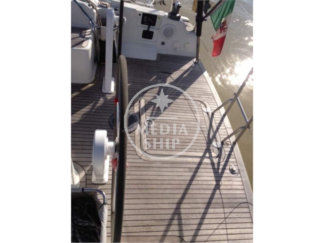 costruzione in epossidica, ponte in teak, judel & vrolijk, yanmar 75 hp + max prop, alternatore di potenza, generatore, riscaldamento webasto, 3 cabine, 2 wc elettrici, elica di prua retrattile, elettronica simrad con gps esterno, randa f. batten, fiocco autovirante, winch elettrici, gruetta amovibile x motore fb inox 2011, tavolo pozzetto fisso, capottina ’2014, bimini +39 06 65 22 258/9, 348 2337 257 www.mediaship.it – C/2801/V