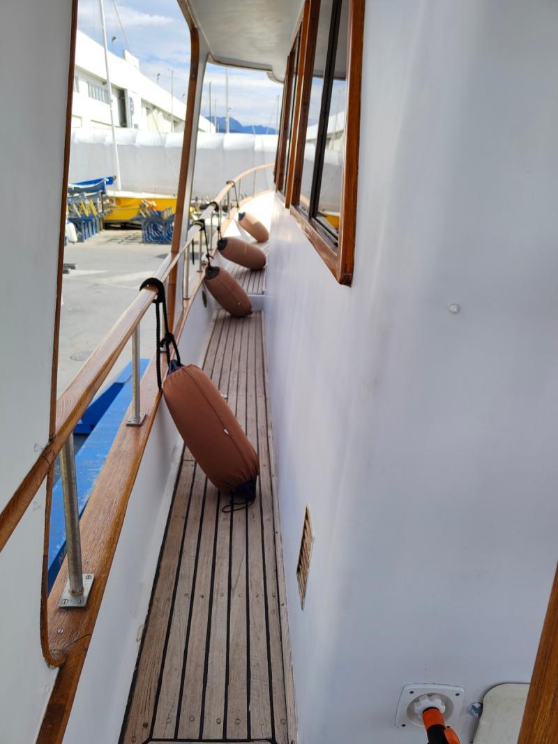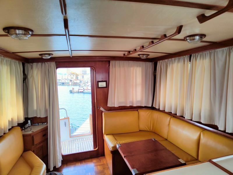 L’HERSHINE 37 “DON PIPPO” è stato sottoposto a un importante refit nel 2022, che ha incluso i seguenti interventi: verniciatura dello scafo e delle sovrastrutture, rifacimento del teak sul capo di banda, nuova passerella, nuovi fari esterni a LED + tergicristalli e tromba, nuovo scambiatore di calore motore sinistro e controllo di quello del motore destro, nuovi manicotti motore, 2 nuovi caricabatterie (per le batterie servizi e il generatore), revisione manette, nuovi cavi per la trasmissione, nuove prese a mare, nuove baderne. Nel 2019 sono state sostituite le batterie, mentre nel 2016 è stata rifatta la coperta in teak. L’HERSHINE 37 “DON PIPPO” è inoltre ricco di dotazioni, con: generatore, bagno con vasca e doccia, impianto Hi-Fi con altoparlanti esterni, scaletta per il bagno, prendisole anteriore + posteriore e sul flybridge, porta del ponte principale totalmente apribile, doppia postazione di comando (sul ponte principale e sul flybridge)