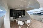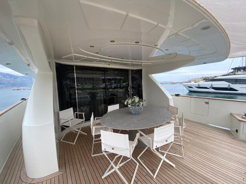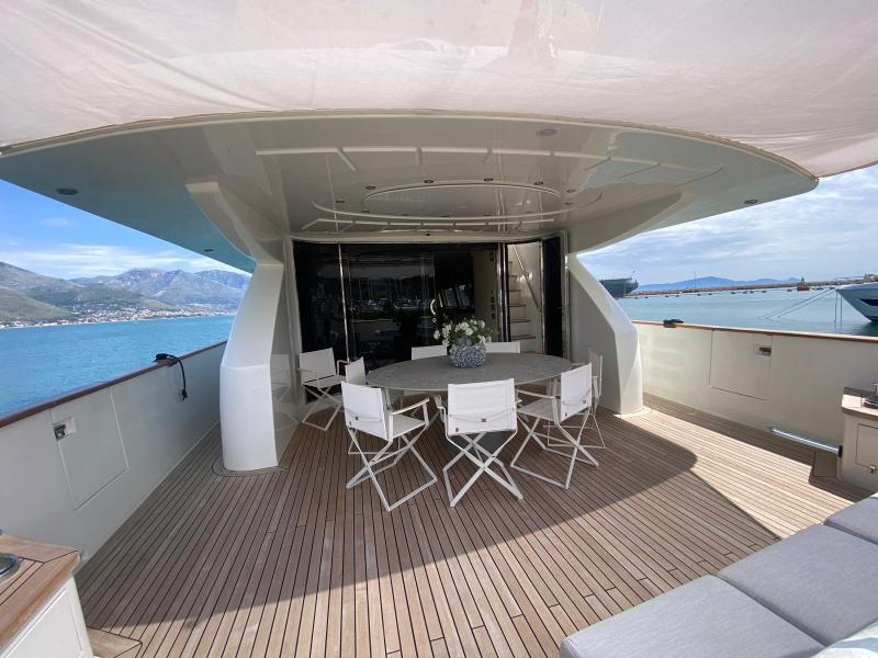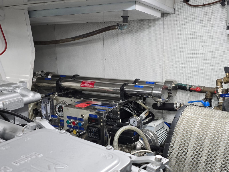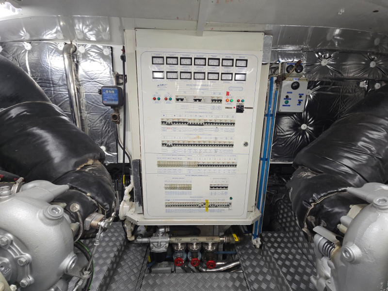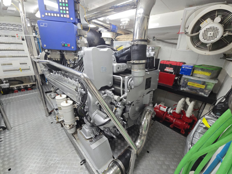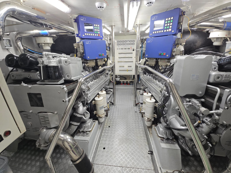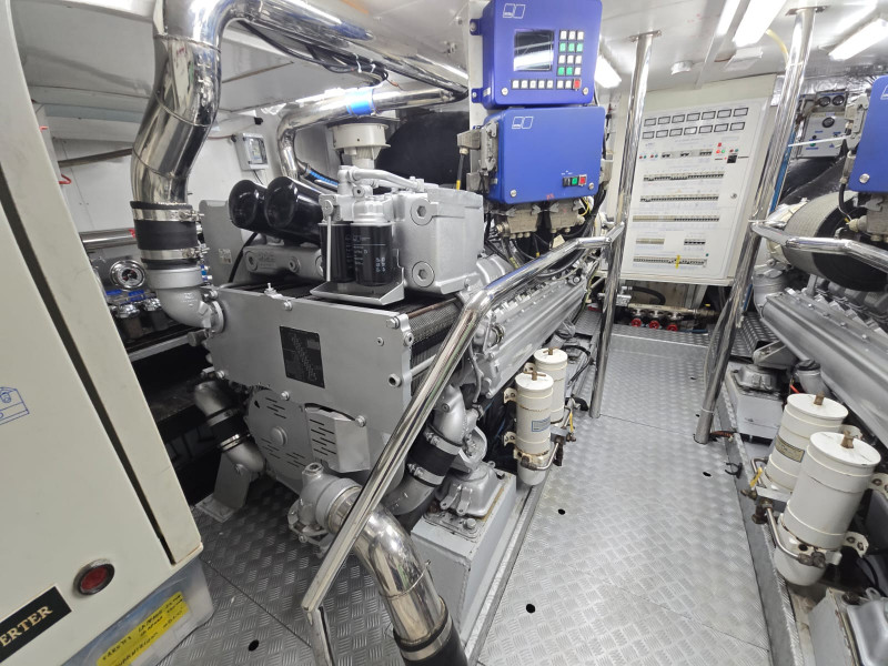 L’ANTAGO 90 tra il 2022 e il 2021 è stato oggetto di refit che ha incluso: il rifacimento di tutti gli impianti di bordo elettrici ed idraulici; revisione integrale della parte meccanica e dei generatori; nuovi arredi interni ed esterni; sostituzione del teak (coperta e spiaggetta di poppa); rifacimento dell’illuminazione; sostituzione della cuscineria e dei tendalini; controllo ed equilibratura eliche; revisione e controllo pale dei timoni e flap; verniciatura totale dello scafo e delle sovrastrutture; controllo e revisione delle bitte e passacavi. L’ANTAGO 90 è ottimamente equipaggiato, con: elica di prua idraulica, 2 generatori, dissalatore Idromar, doppio winch di tonneggio, autopilota, GPS interno/esterno, climatizzatore, cassaforte, lavatrice, asciugatrice, videocamera in pozzetto, sul fly e nella sala macchine, 4 lussuose cabine con letti matrimoniali + 1 cabina singola con bagno, 3 cabine e 2 bagni per l’equipaggio (5 posti letto in totale), bellissima cucina attrezzata, passerella idraulica, spiaggetta di poppa, gru nel fly, TV in dinette e in tutte le cabine, impianto Hi-Fi con altoparlanti esterni.