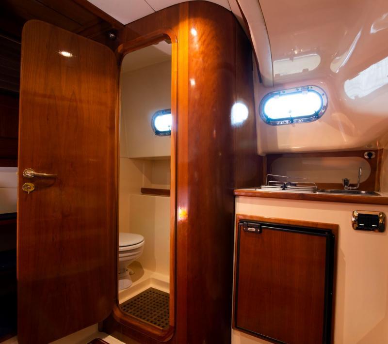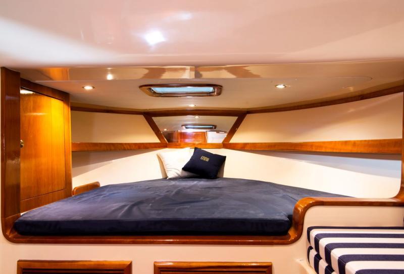 All’interno, l’Apreamare 75 accoglie l’armatore con un ambiente caldo e curato, dotato di una cabina matrimoniale a prua, una dinette trasformabile, cucina attrezzata e bagno separato con doccia. Gli esterni offrono generose aree prendisole a prua e a poppa, perfette per il relax, mentre la coperta in teak, la scaletta da bagno e la doccetta esterna esaltano l’esperienza a bordo. Dotata di strumentazione completa, si distingue per la maneggevolezza e la sicurezza durante ogni manovra.