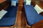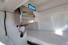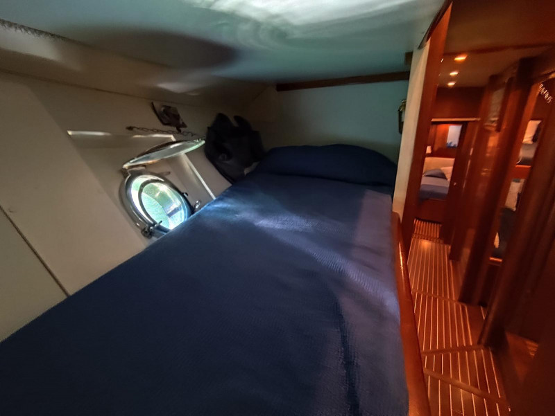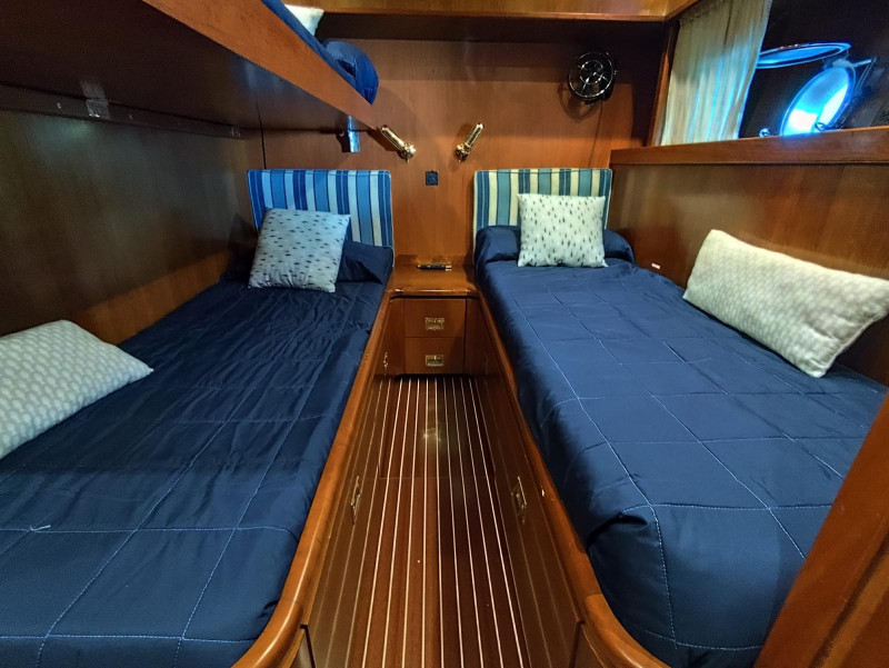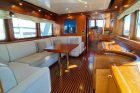 Gli interni, rifiniti con materiali di pregio, sono stati realizzati per accogliere l’Armatore ed i propri ospiti, garantendo con spazi generosi la massima vivibilità con cabine accoglienti e un salone ideale per momenti conviviali. Le aree esterne, dal flybridge panoramico al pozzetto di poppa, offrono ampie zone relax.