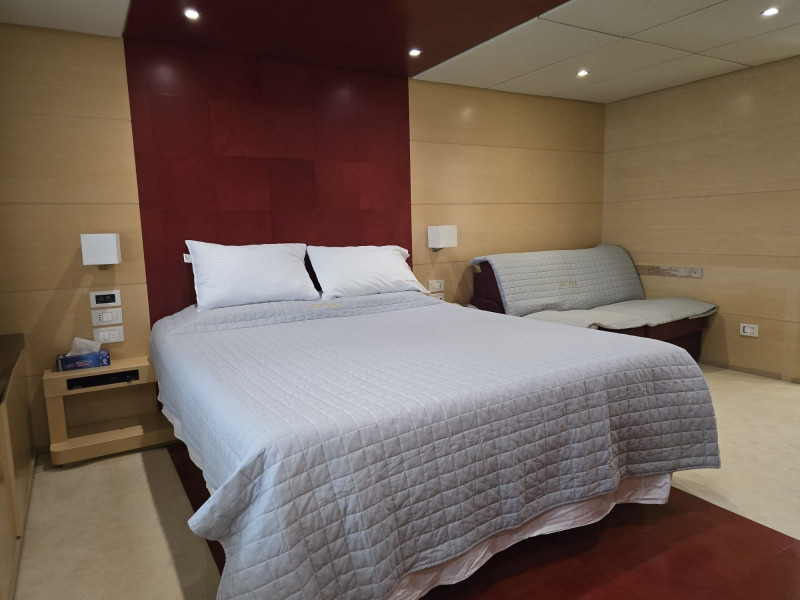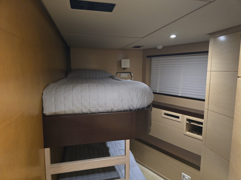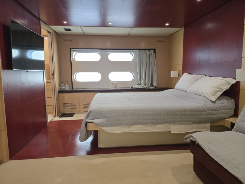 Il C BOAT 27 è in grado di accogliere fino a 10 ospiti in 5 cabine (armatoriale a centro barca, due VIP matrimoniali e le due cabine ospiti con letto a castello), tutte dotate di bagno privato e box doccia. Per l’equipaggio sono presenti due cabine, a poppa con 2 bagni per un tatale di 5 posti letto. La zona giorno si apre sul Main Deck con un ampio salone, zona pranzo e l’ampia cucina separata. All’esterno troviamo il pozzetto con la relativa zona pranzo arredata con tavolo e divano, nonché un’ampia plancetta attrezzata ed infine dallo spaziosissimo Flybridge, arredato con ampio prendisole, tavolo da pranzo e cucina esterna e postazione di comando esterna.