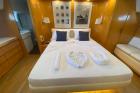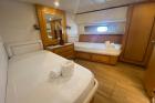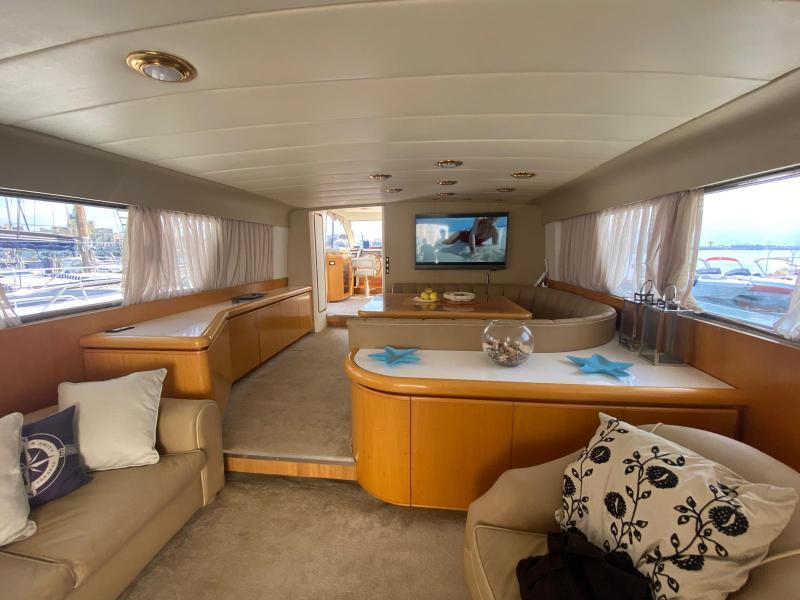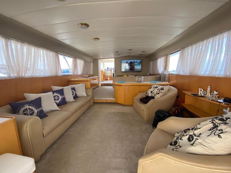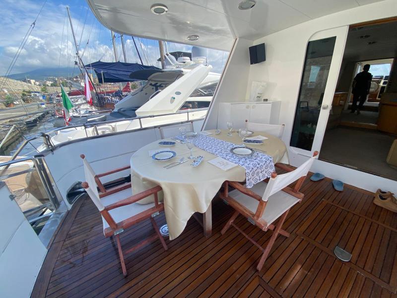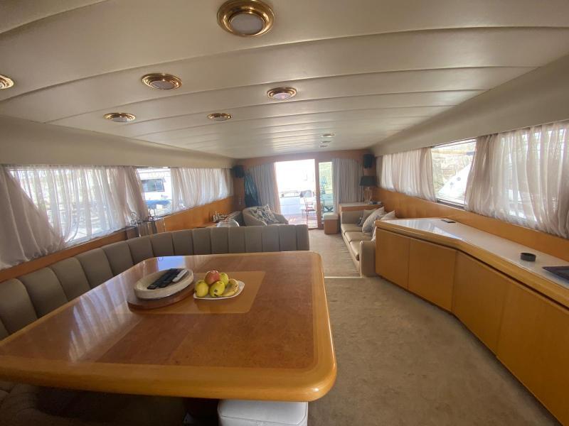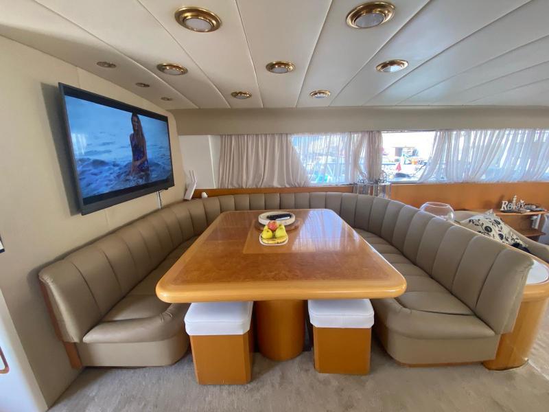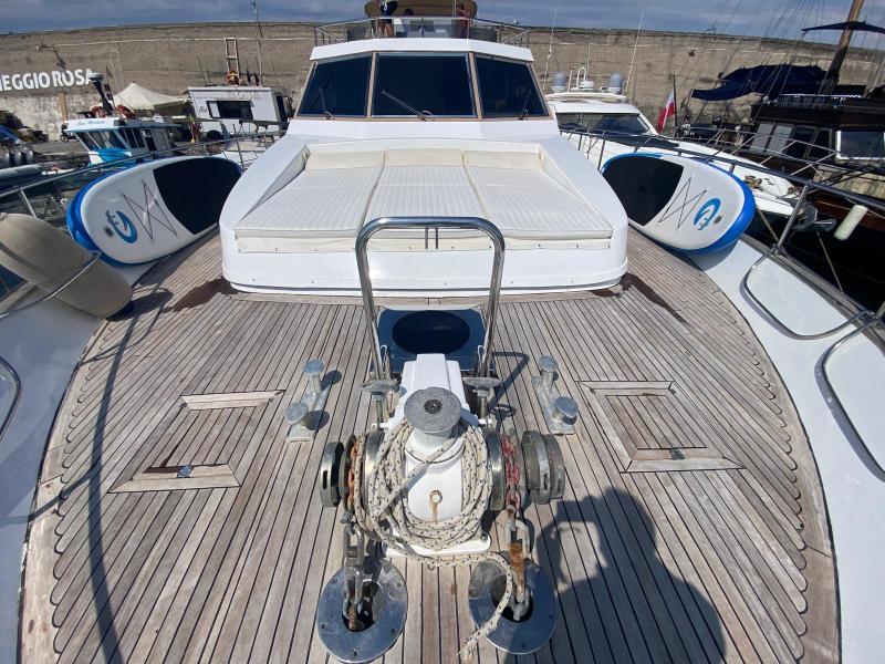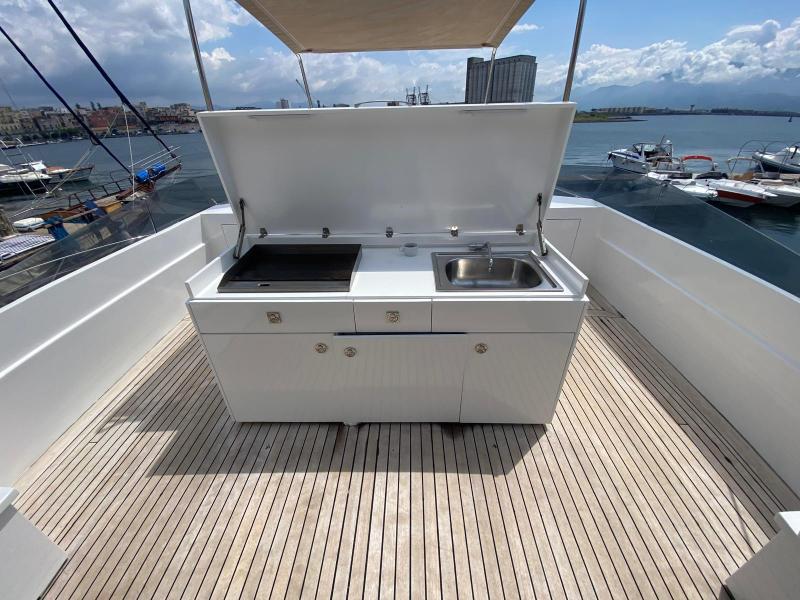 | Accessori | Scala reale per il bagno, Passerella idraulica, Winch tonneggio, Tavolo pozzetto amovibile, Passerella in acciaio e teak, Winch tonneggio elettrici, Spiaggetta di poppa, Prendisole anteriore, Prendisole sul fly, Postazione comando su ponte principale, Postazione comando su fly, Invaso per tender |