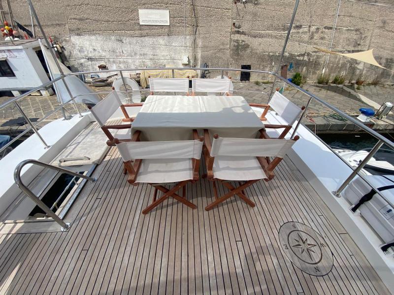 | Impianti | Impianto 12V, Impianto 220V, Boiler 220V, Boiler motore, Ancora, Ancora di rispetto, Generatore, Impianto 24V, Aria Condizionata, Pulsante per salpancora in pozzetto, Salpancore di prua, Caricabatterie, Inverter, Impianto antincendio, Climatizzatore, Dissalatore, Illuminazione interna a LED, 2° caricabatterie |