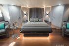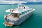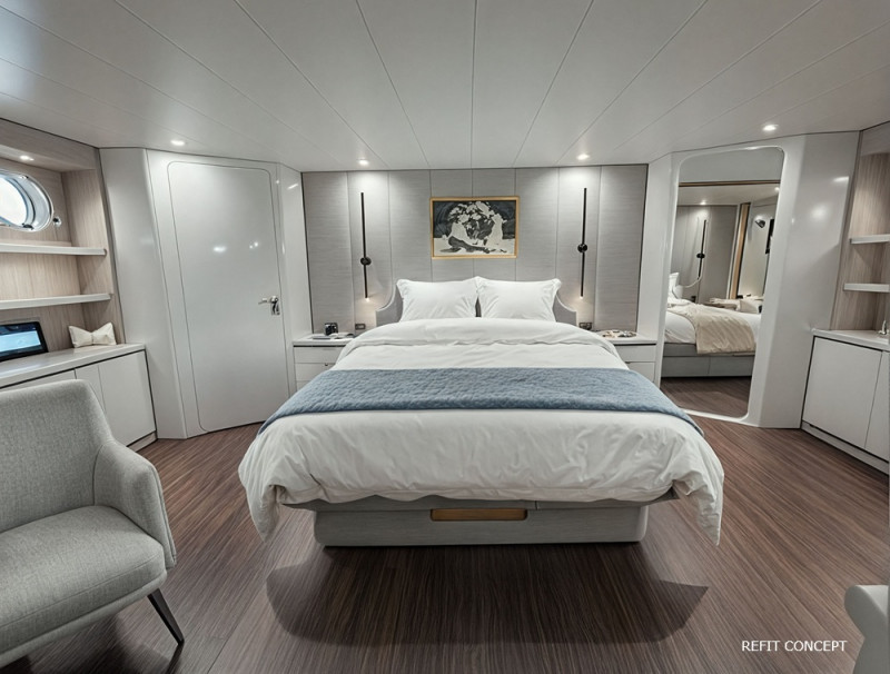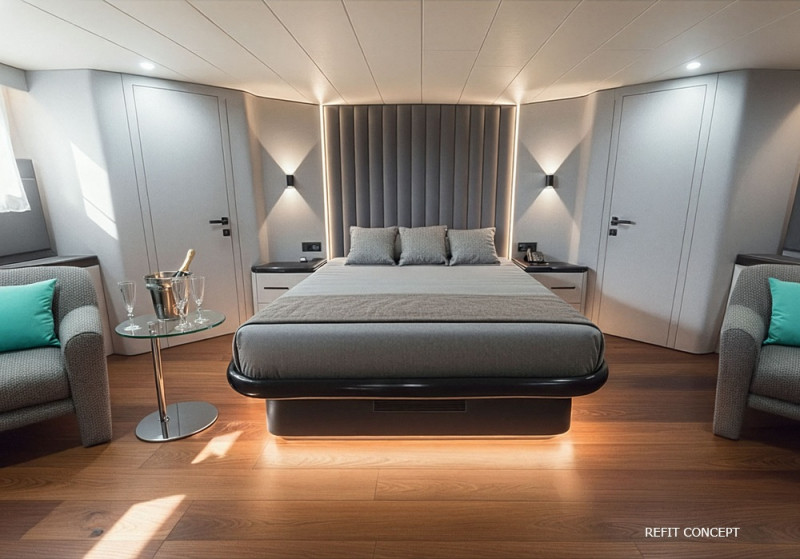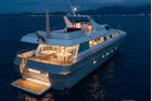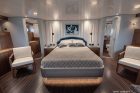 Il suo scafo in alluminio non solo garantisce leggerezza e robustezza, ma contribuisce anche a prestazioni di alto livello, supportate da potenti motori Caterpillar da 1950 HP ciascuno, capaci di raggiungere una velocità massima di 28/29 nodi. Gli interni, curati nei minimi dettagli, accolgono fino a 12 ospiti in 5 cabine eleganti, arricchite da finiture di pregio come legni di radica e pavimenti in legno smaltato, mentre gli spazi per l’equipaggio garantiscono un servizio impeccabile.