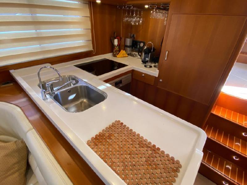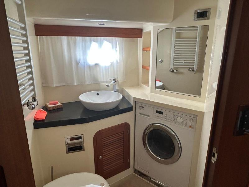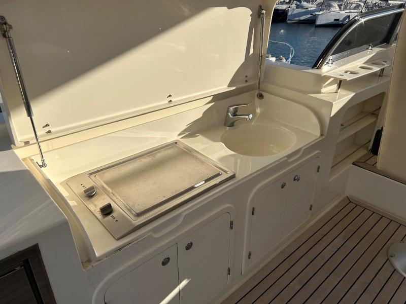 L’ADAGIO 55 è ben equipaggiato, con: elica di prua ed elica di poppa, telecamera FLIR per la visione notturna, passerella idraulica, spiaggetta di poppa, winch di tonneggio, coperta e trincarino in teak, generatore, dissalatore, pannelli solari, riscaldamento con radiatori e fancoil nei bagni, aria condizionata, GPS con cartografia interfacciato con radar, videocamera in pozzetto e nella sala macchine, pinne stabilizzatrici, luci subacquee, cucina attrezzata (3 frigoriferi interni + 1 sul flybridge, piano cottura a induzione, forno a microonde, freezer, ice maker, lavastoviglie), lavasciuga, due cabine con letti matrimoniali, bagno armatoriale con box doccia, antenna satellitare, TV a scomparsa nella dinette, impianto Hi-Fi con altoparlanti esterni, angolo bar con grill sul flybridge, telo privacy per il pozzetto, teli ombreggianti laterali e posteriore per il flybridge, scaletta per il bagno maggiorata, ancora di rispetto. Tra gli interventi di manutenzione più recenti, nel 2025 la revisione del riscaldamento Webasto, ecc.