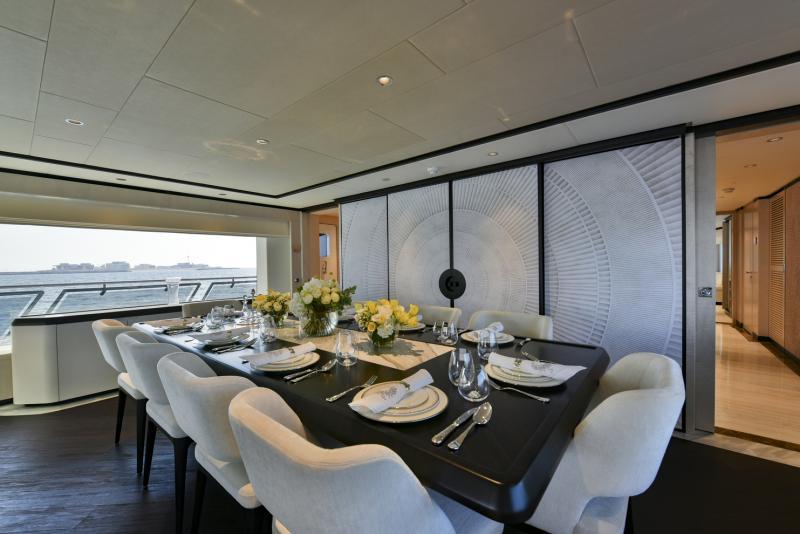 Il MAJESTY 120, vincitore nel 2023 di numerosi premi: Eco Award & Best Naval Architecture ai BOAT International Design & Innovation Awards, può ospitare fino da 10 a 12 ospiti a scelta in 5 o 6 cabine. Tra le caratteristiche salienti del Majesty 120: terzo ponte con vasca idromassaggio, volumi interni ed esterni al pari di yacht sopra i 40 m, con una superficie dedicata alla socialità e all’intrattenimento del 25% più ampia di altri yacht della sua categoria.