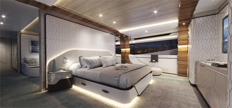 Con un equilibrio tra ambienti interni ed esterni, l’elemento più caratterizzante del MAJESTY 160 è la magnifica Master Suite alla fine del corridoio principale di prua, che include anche un salotto privato, un balcone a scomparsa e un ampio bagno armatoriale privato corredato di vasca da bagno e doccia, oltre alla cabina armatoriale a tutto baglio. Il nuovo modello può accogliere fino a 12 ospiti nelle sue 7 cabine, oltre a un equipaggio di 9 membri in 5 grandi cabine, più l’alloggio privato del comandante.