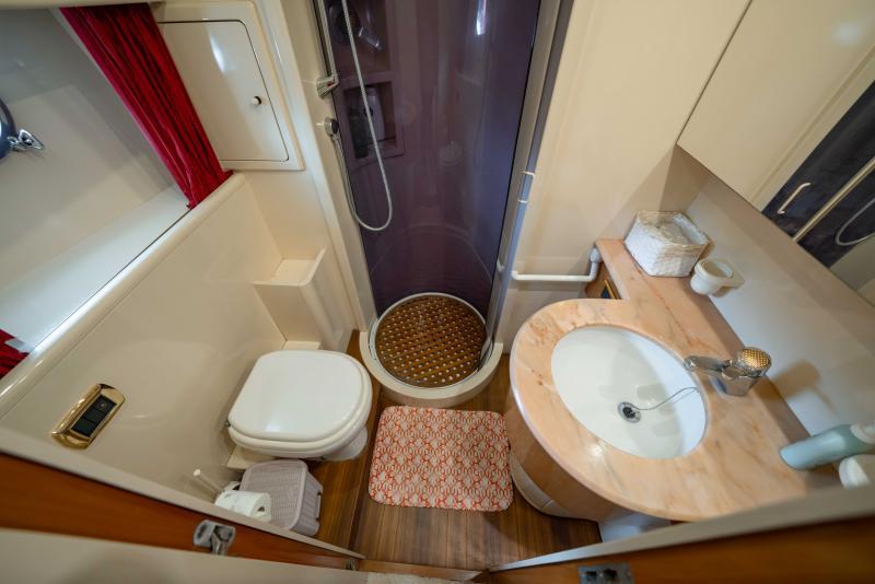 A livello di design, il Mochi20 Forte solitamente presenta un layout ben studiato per ottimizzare lo spazio a bordo, con ampia cabina armatoriale di prua, 2 comode cabine per gli ospiti (una con letto matrimoniale e un con due letti separati in piano) e un pozzetto ben attrezzato per il relax e l’intrattenimento. Le finiture sono di alta qualità, con materiali pregiati e dettagli curati, tipici dello stile artigianale italiano. Il Mochi 20 Forte è concepito per offrire un’esperienza di navigazione di lusso, sia per brevi uscite così come per crociere più lunghe.