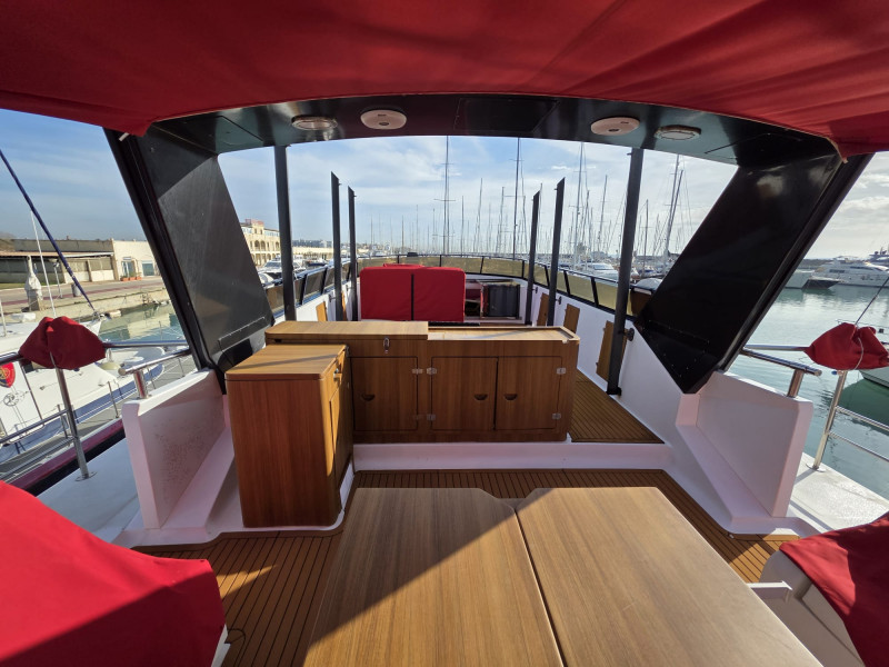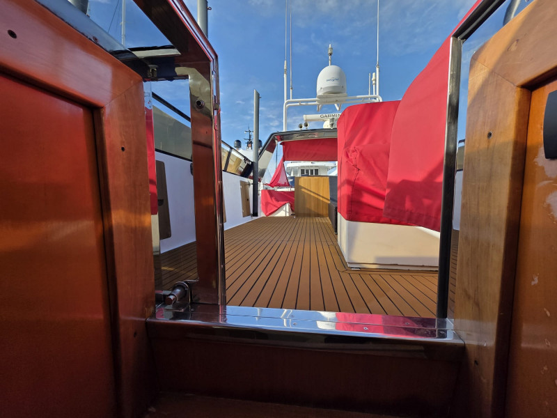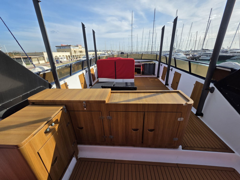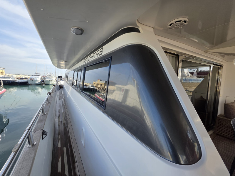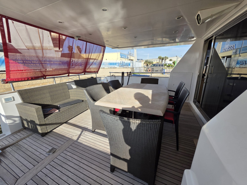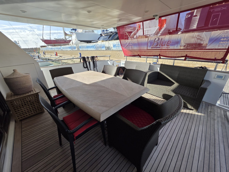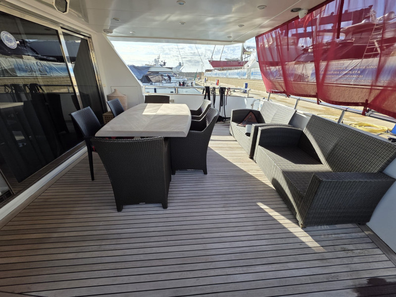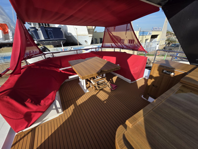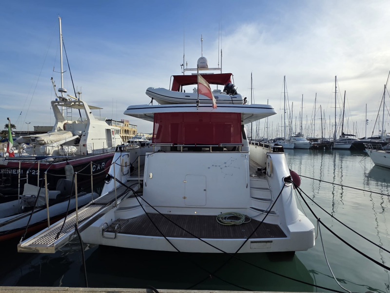 | Accessori | Scaletta per il bagno, Tavolo pozzetto fisso, Winch tonneggio, Passerella idraulica a scomparsa, Passerella in acciaio e teak, Winch tonneggio elettrici, Spiaggetta di poppa, Gruetta elettrica telescopica per tender |