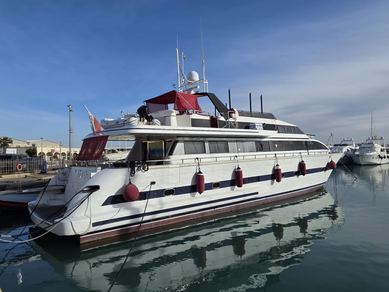 SUPER CHALLENGER 80, 1991, COPERTA IN TEAK, 2 x 1550 HP CATERPILLAR, 90 ORE DI MOTO, DIESEL, ELICA DI PRUA, ASSE, 4 CABINA/E, 4 BAGNO/I, CUCINA SEPARATA, ICE MAKER, LAVASTOVIGLIE, GENERATORE, 2° GENERATORE, ARIA CONDIZIONATA, RADAR, PASSERELLA IDRAULICA, CUSCINERIA ESTERNA, +39 06 65 22 258/9, www.mediaship.it – CODICE ANNUNCIO W124389/M