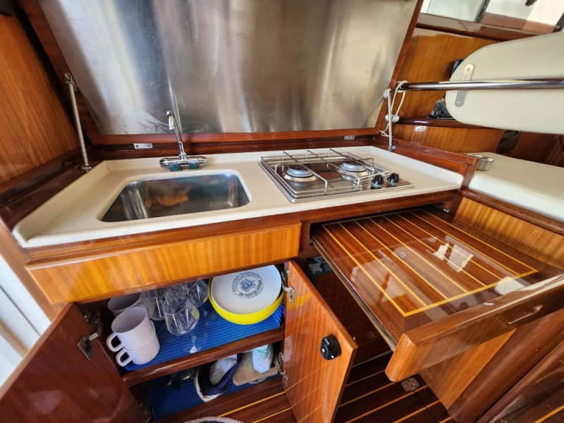 | Impianti | Impianto 12V, Impianto 220V, Boiler 220V, Boiler motore, Ancora, Pulsante per salpancora in pozzetto, Pompa di sentina elettrica, Salpancore di prua, Caricabatterie, Illuminazione interna a LED, Luci di via a LED, 2° Salpancore di prua |