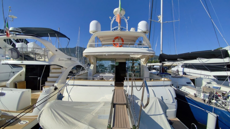 | Accessori | Scaletta per il bagno, Tavolo pozzetto fisso, Passerella idraulica, Winch tonneggio, Passerella in acciaio e teak, Spiaggetta di poppa |