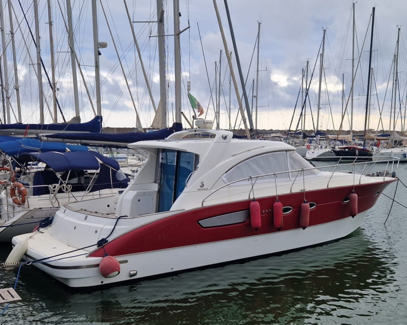 FLYER 12 CABIN, 2005, SCAFO ROSSO, 2 x 370 HP VOLVO PENTA, DIESEL, ELICA DI PRUA, 2 CABINA/E, 1 BAGNO/I, RADAR, CUSCINERIA ESTERNA, +39 06 65 22 258/9, www.mediaship.it – CODICE ANNUNCIO W194723/M
