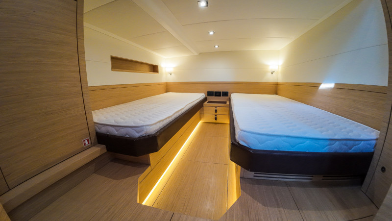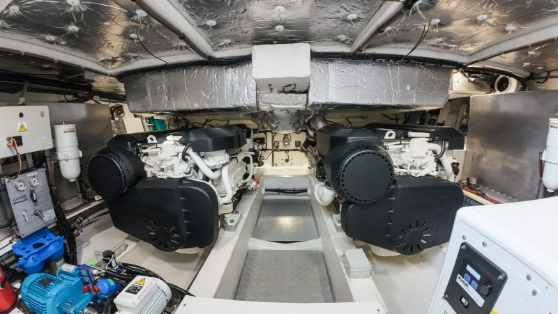 | Impianti | Ancora, Generatore, Salpancore di prua, Caricabatterie, Inverter, Climatizzatore, Illuminazione interna a LED, Illuminazione interna di cortesia, Luci subacquee, Stabilizzatore |
