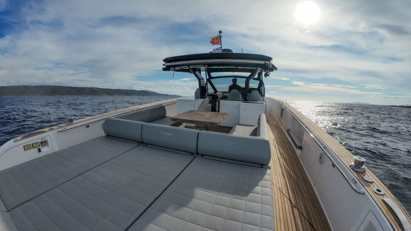 | Accessori | Scaletta per il bagno, Passerella idraulica a scomparsa, Passerella in acciaio e teak, Spiaggetta di poppa idraulica, Tavolo a scomparsa |