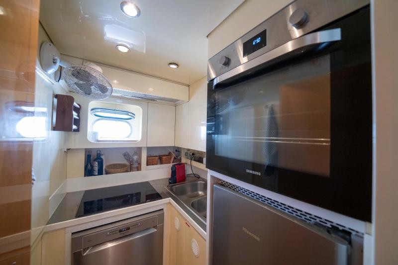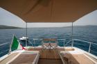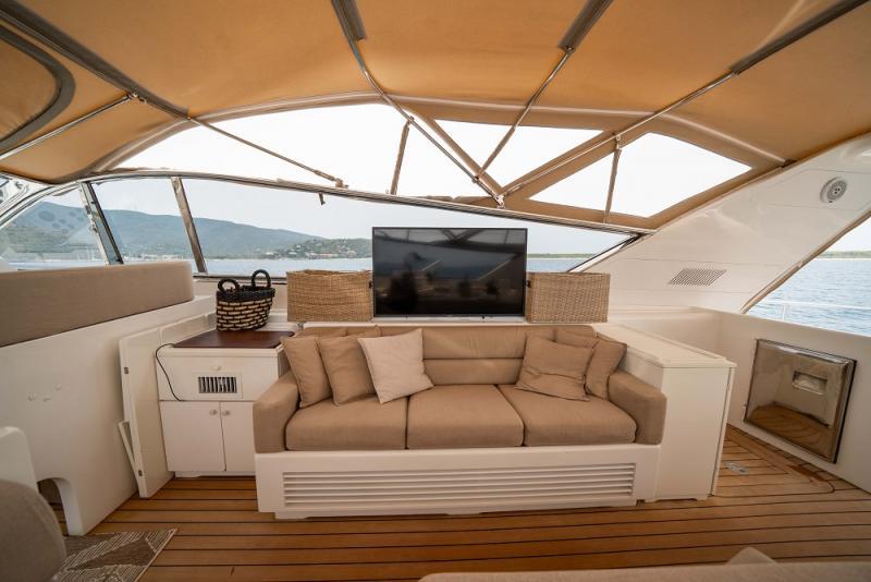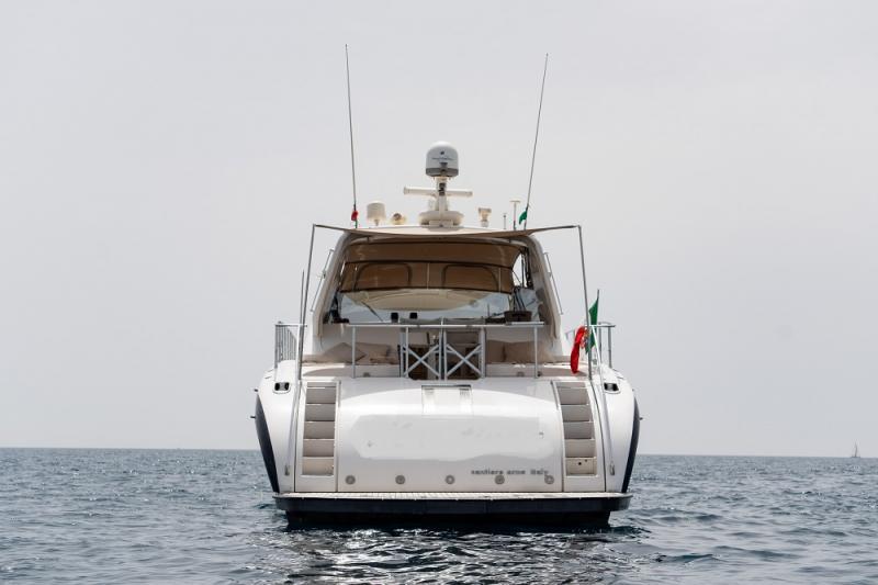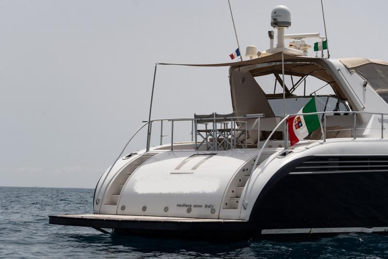 | Accessori | Tavolo pozzetto fisso, Passerella idraulica, Garage per tender, Passerella in acciaio e teak, Spiaggetta di poppa, Prendisole anteriore, Prendisole posteriore |