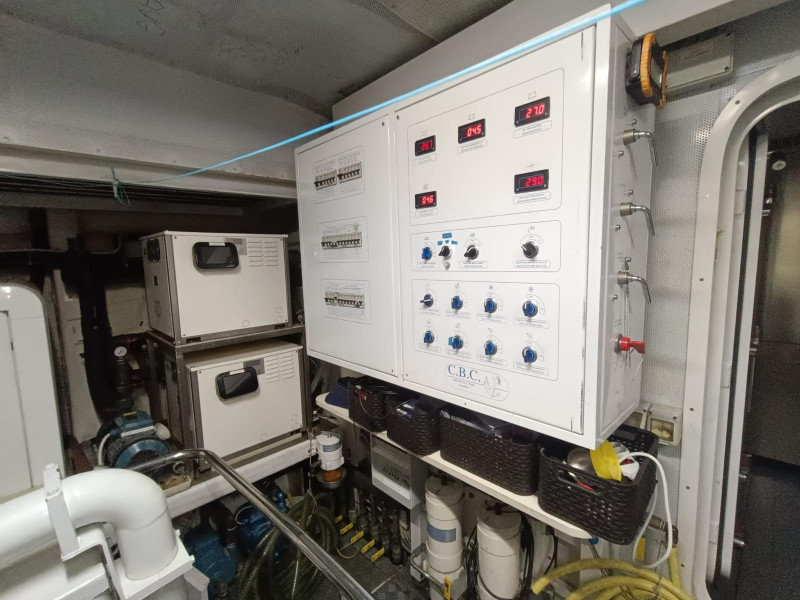 Impianti | Impianto 12V, Impianto 220V, Boiler 220V, Boiler motore, Ancora, Generatore, Aria Condizionata, Salpancore di prua, Caricabatterie, Impianto antincendio, Dissalatore, Illuminazione interna a LED, 2° Generatore |
