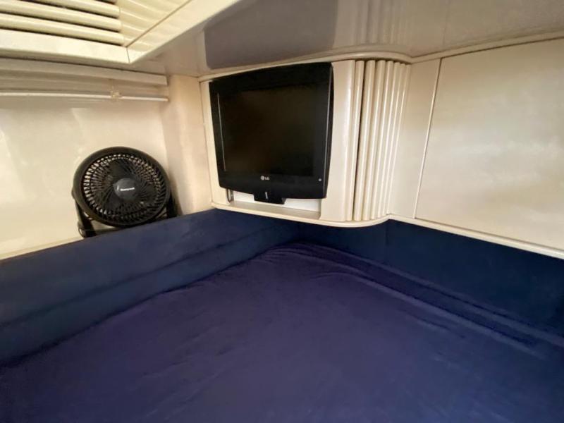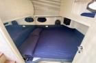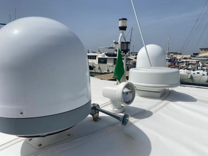 Il PERSHING 54, nella versione a tre cabine + cabina marinaio e trasmissione con elica di superficie Arneson, dai consumi più contenuti e velocità più elevate rispetto alla linea d’asse tradizionale, è stato immatricolato nel 1999. Nel 2022 è stato completato un refit che ha incluso, tra gli altri, i seguenti interventi: nuove eliche, tagliando motori e generatore, pulizia carena con idropulitrice, manutenzione sistema di propulsione Arneson, trattamento teak, sostituzione zinchi e batterie, revisione pompa acque nere. Nel 2017 i motori sono stati sbarcati e revisionati, con circa 200 ore di moto dalla revisione ad oggi. Il PERSHING 54 è molto ben equipaggiato, con: elica di prua, generatore, aria condizionata, passerella idraulica, piano cottura in vetroceramica, 3 frigoriferi, TV in dinette, impianto Hi-Fi con altoparlanti esterni.