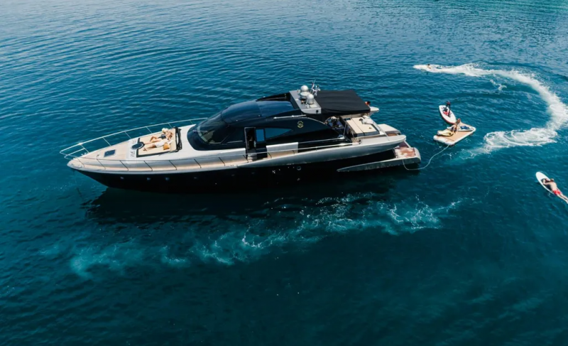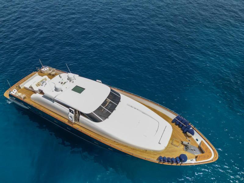 | Accessori | Scaletta per il bagno, Tender, Tavolo pozzetto fisso, Winch tonneggio, Garage per tender, Passerella idraulica a scomparsa, Passerella in acciaio e teak, Winch tonneggio elettrici, Spiaggetta di poppa, Selle, Prendisole anteriore, Prendisole posteriore |