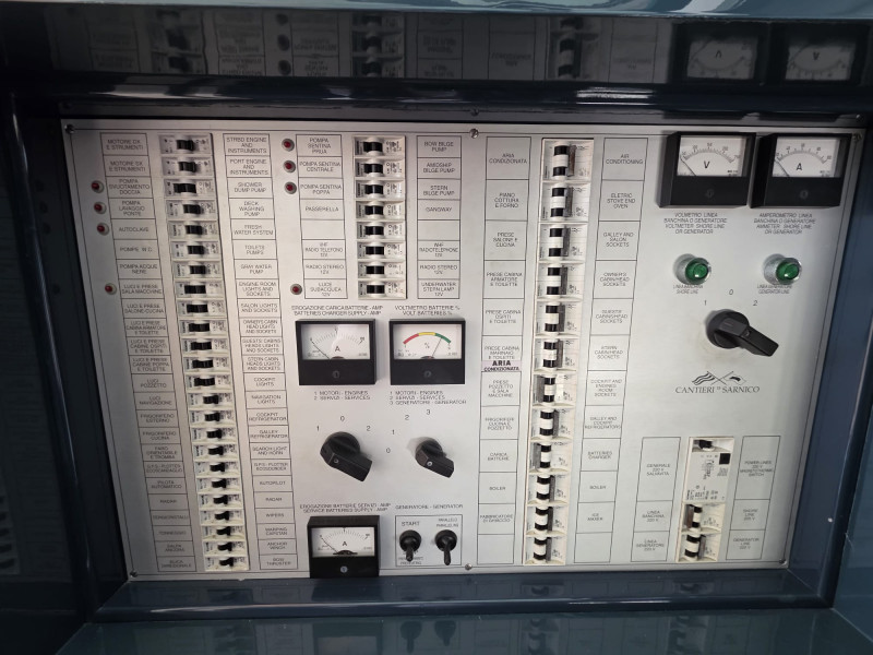 | Impianti | Impianto 12V, Impianto 220V, Boiler 220V, Boiler motore, Ancora, Generatore, Pompa di sentina elettrica, Salpancore di prua, Caricabatterie, Inverter, Climatizzatore, Antenna satellitare, Luci subacquee |