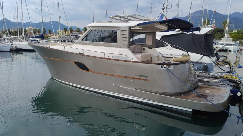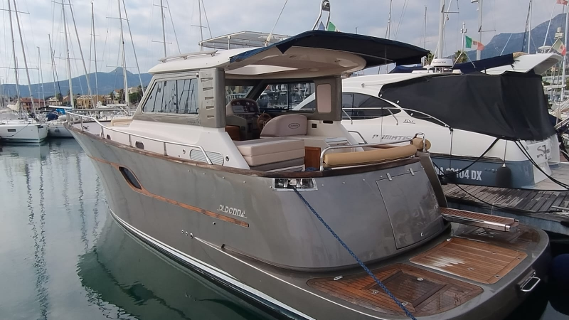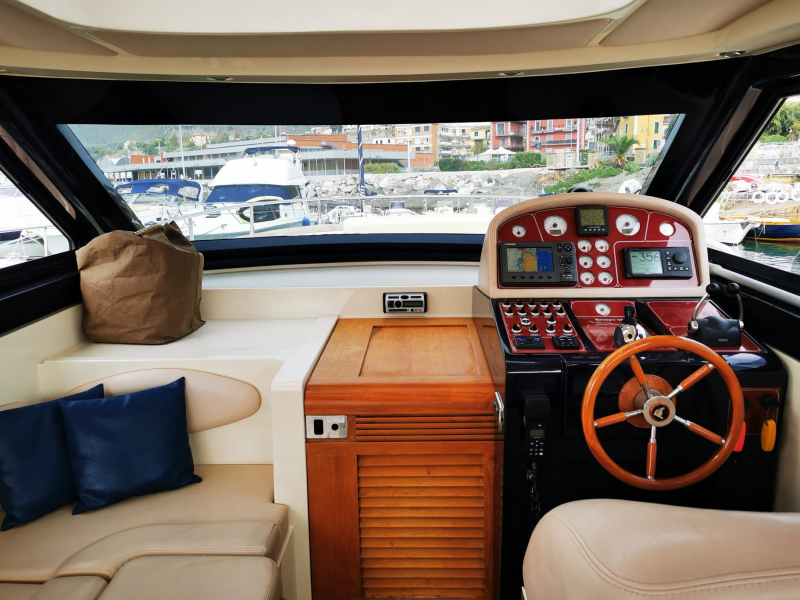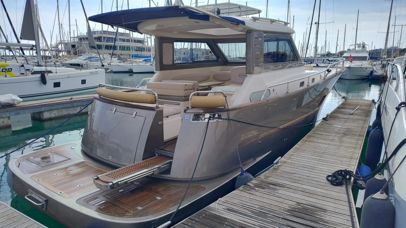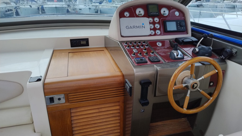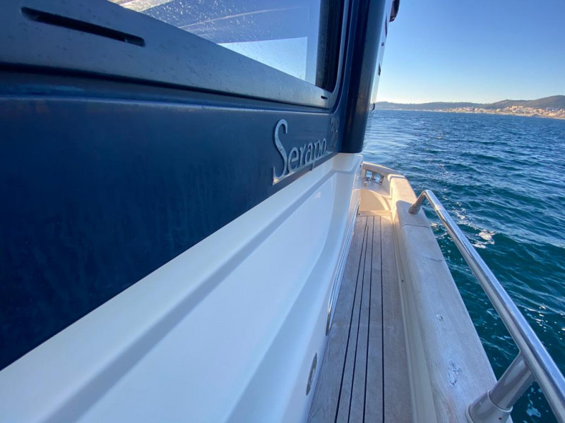 SERAPO 38, 2009, SCAFO BLU, COPERTA IN TEAK, 2 x 330 HP VOLVO PENTA, 585 ORE DI MOTO, DIESEL, 2 CABINE, 1 BAGNO, GENERATORE, ARIA CONDIZIONATA, PASSERELLA IDRAULICA A SCOMPARSA, CUSCINERIA ESTERNA, +39 06 65 22 258/9, www.mediaship.it – CODICE ANNUNCIO W137501/M