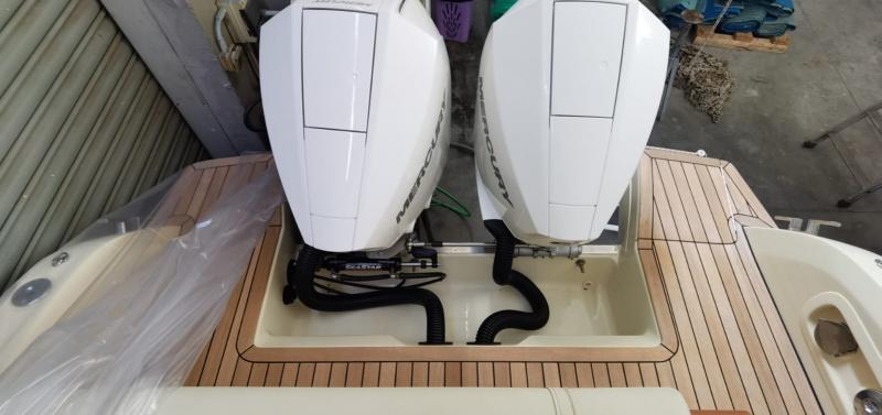 L’INVICTUS CX270 condivide con il CX280, da cui deriva, il carattere elegante, versatile e conviviale. La configurazione fuoribordo ne esalta le prestazioni, senza tuttavia togliere slancio ed equilibrio alle linee. L’INVICTUS CX270 è un natante molto veloce (velocità massima 38 nodi) e ottimamente equipaggiato, con: elica di prua, pozzetto e plancetta in teak, serbatoio acqua maggiorato (70 litri invece di 54) con indicatore di livello, consolle di guida Mercury Vessel View e tavolo in pozzetto amovibile. La barca è equipaggiata di un sistema di correttori d’assetto “Interceptor” all’avanguardia che, invece di utilizzare i tradizionali flap/trim tab , impiega “lame” attivate elettricamente che sporgono verso il basso, parallelamente allo specchio di poppa, per un’efficace deviazione del flusso idrodinamico sotto lo scafo con tempi di reazione inferiori a 1,5 secondi. Appena 54 ore di moto, si presenta in condizioni pari al nuovo, in quanto è stato utilizzato pochissimo dal suo unico proprietario, che l’ha acquistata nuova nel 2020.