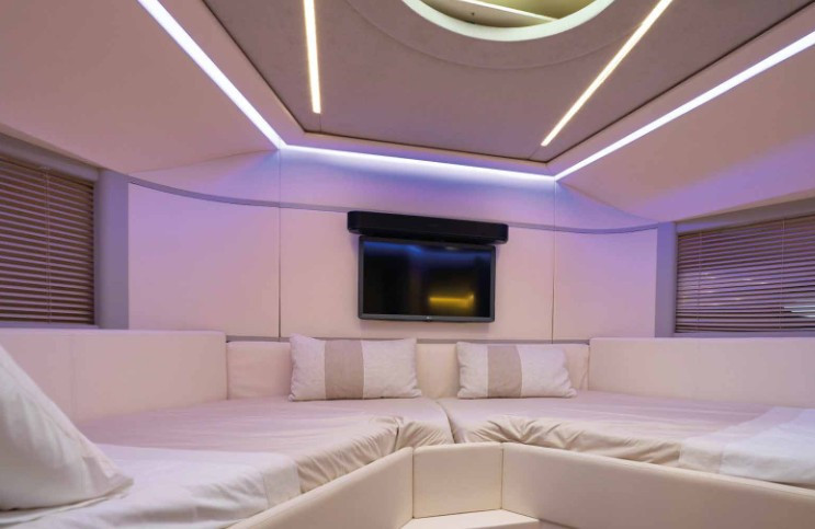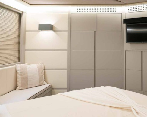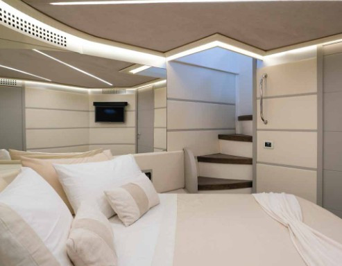 | Impianti | Impianto 12V, Impianto 220V, Boiler 220V, Ancora, Generatore, Impianto 24V, Aria Condizionata, Pulsante per salpancora in pozzetto, Salpancore di prua, Telecomando per salpancora, Inverter, Impianto antincendio, Climatizzatore, Dissalatore, Illuminazione interna a LED, Luci di via a LED |