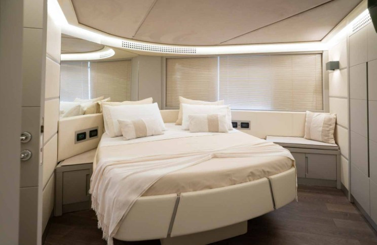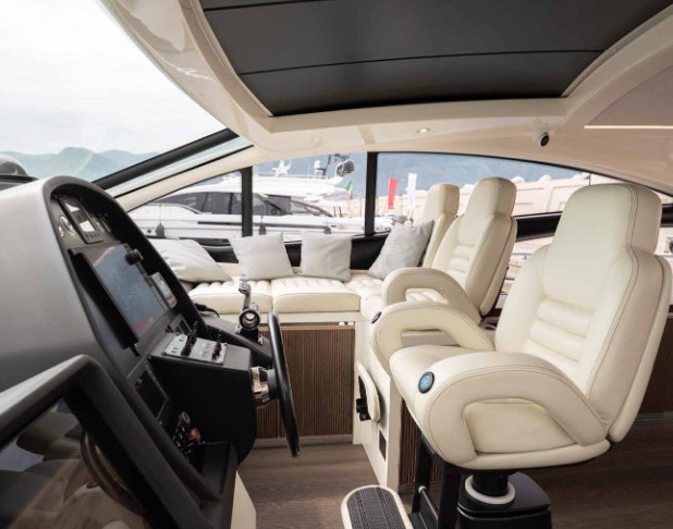 | Accessori | Scaletta per il bagno, Tender, Fuoribordo, Passerella idraulica, Passerella in acciaio e teak, Spiaggetta di poppa idraulica, Prendisole posteriore, Postazione comando su ponte principale, Invaso per tender |
