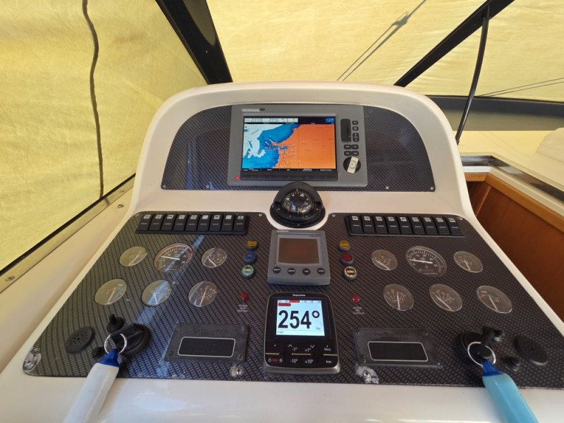 | Impianti | Impianto 12V, Impianto 220V, Boiler 220V, Boiler motore, Ancora, Generatore, Pulsante per salpancora in pozzetto, Salpancore di prua, Telecomando per salpancora, Caricabatterie, Illuminazione interna a LED, Antenna satellitare |