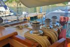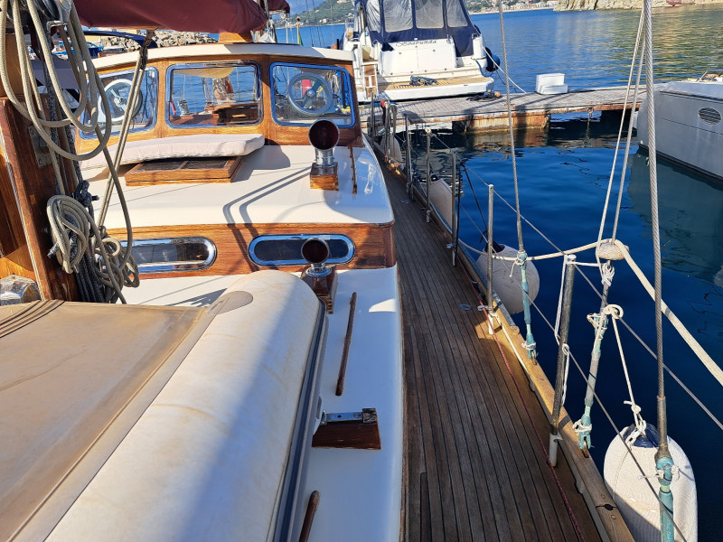 Il FORTUNA 46 è ottimamente equipaggiato, con: 2 cabine dotate di bagno privato (di cui l’armatoriale a poppa), coperta in teak, elica di prua, generatore, riscaldamento a gasolio, bompresso in acciaio, trinchetta amovibile, avvolgiranda manuale, elettronica Raymarine con autopilota e GPS interfacciato con radar, copertura totale ponte, tendalino parasole + cappottina, tavolo in pozzetto amovibile, cucina attrezzata. Sempre ben mantenuto, nel 2024 è stato installato il nuovo generatore, nel 2022 le nuove batterie al gel e nel 2019 le nuove vele. Nel 2012 è stato sottoposto a un rigoroso refit generale: la barca è stata completamente smontata e sabbiata, gran parte del fasciame è stato rifatto, così come la coperta in teak, mentre il motore è stato sostituito. Il refit del 2010 ha invece incluso la verifica degli spessori, la verniciatura dello scafo in acciaio, il rifacimento del sartiame spiroidale e delle prese a mare