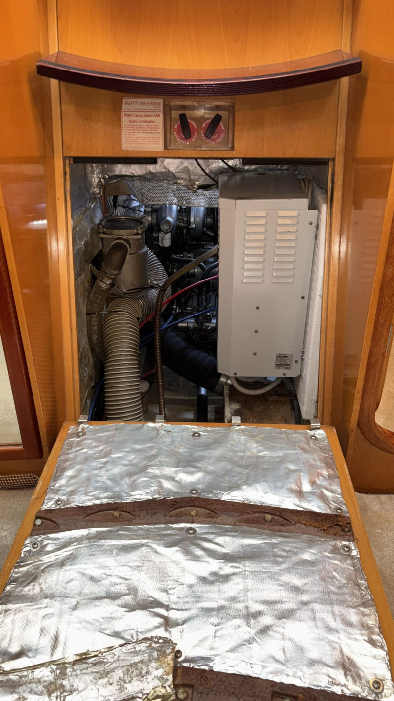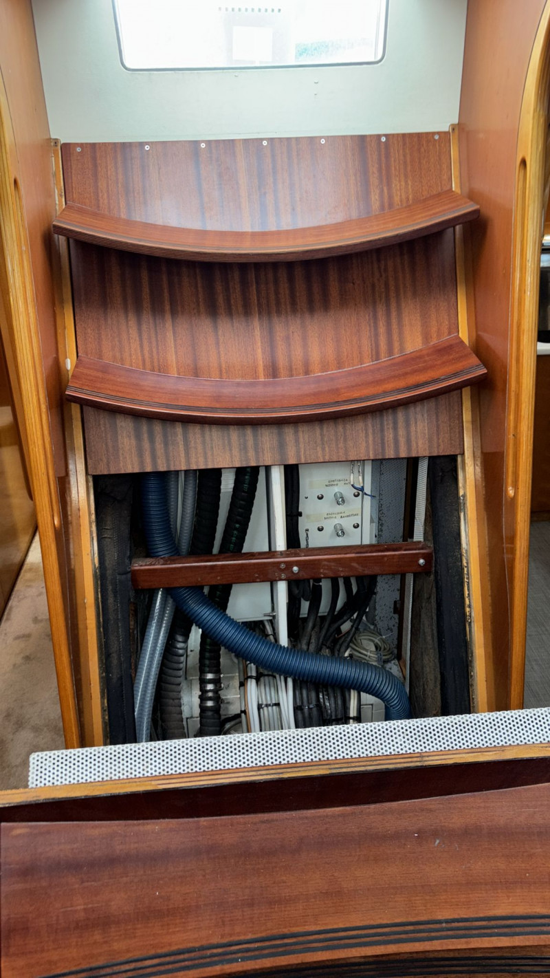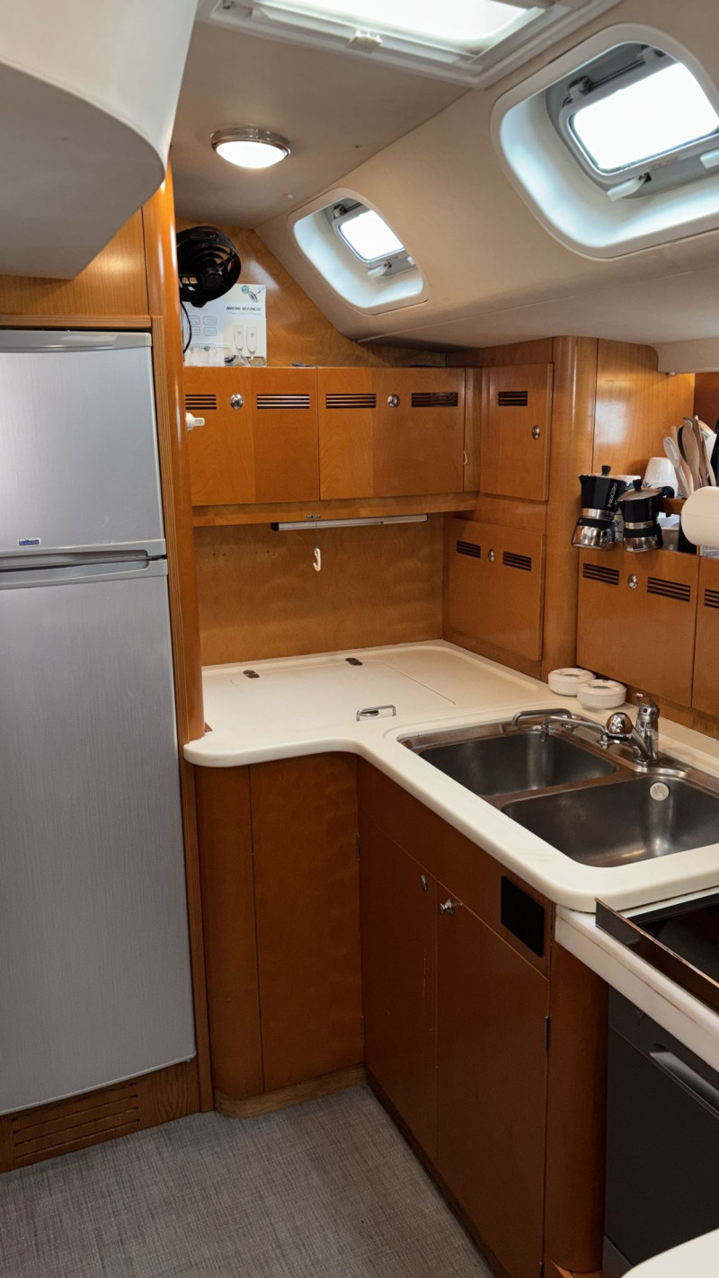 Il CNB 64 è stato sottoposto a ben due refit. Il più recente nel 2025, che ha incluso i seguenti interventi: revisione completa del sistema di propulsione del motore, così come del generatore e dell’avvolgifiocco elettrico; nuova elettronica Raymarine; nuovi quadri per l’impianto elettrico; nuovi cablaggi, comandi e TV in quadrato; nuova lavastoviglie e nuovo piano cottura a induzione; 2 nuovi winch elettrici e pompe di sentina; sostituzione del motore del salpancore e dei compressori dell’aria condizionata; sostituzione della rubinetteria e delle docce di tutti i bagni; nuovo impianto Hi-Fi; nuovo tavolo esterno. Inoltre, nel 2024 il rifacimento dell’astuccio dell’asse dell’elica e di tutte le prese a mare; la nuova trinchetta; la revisione del pistone idraulico del pilota automatico; le nuove batterie per motore, elica di prua generatore; ecc.