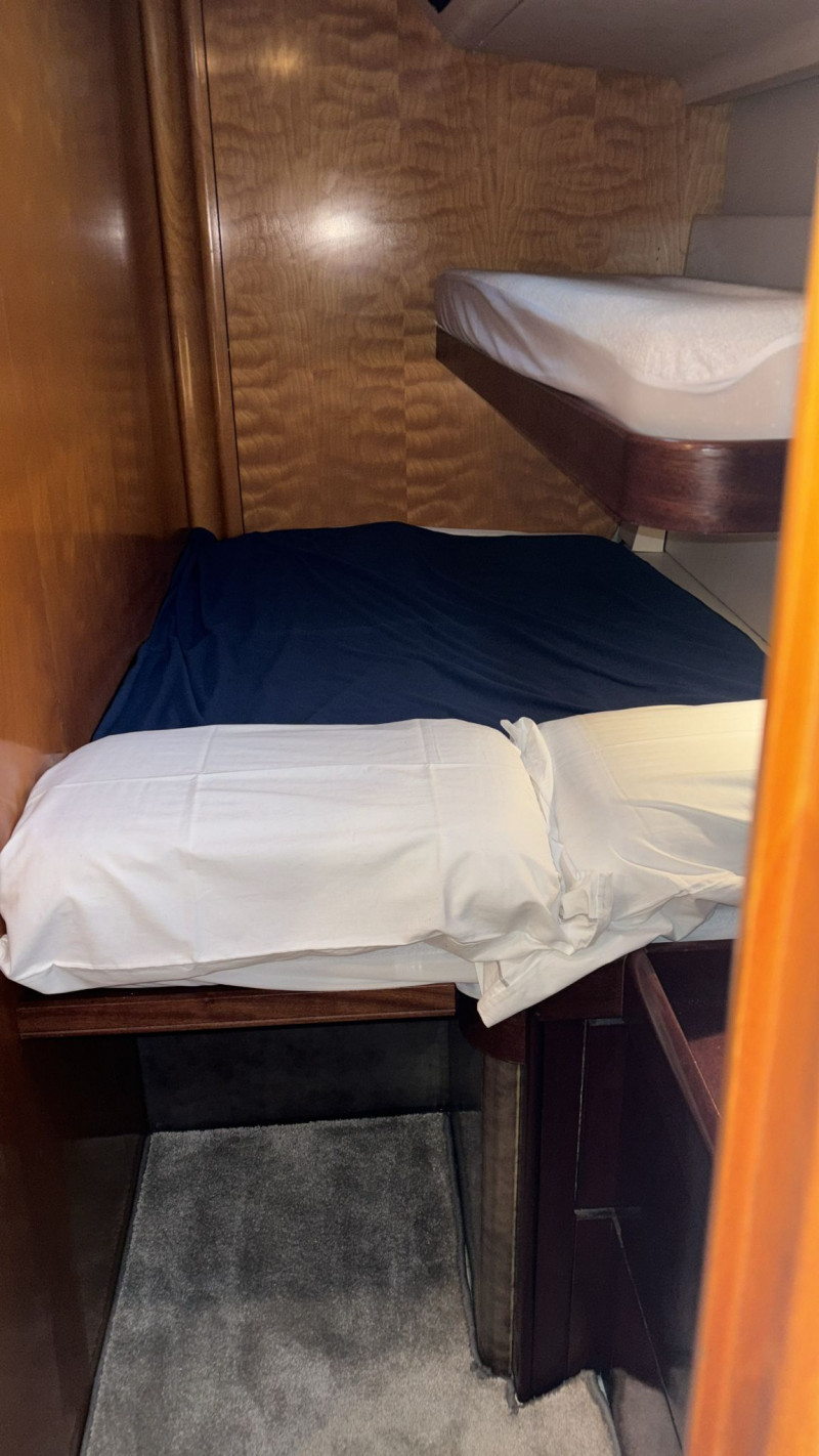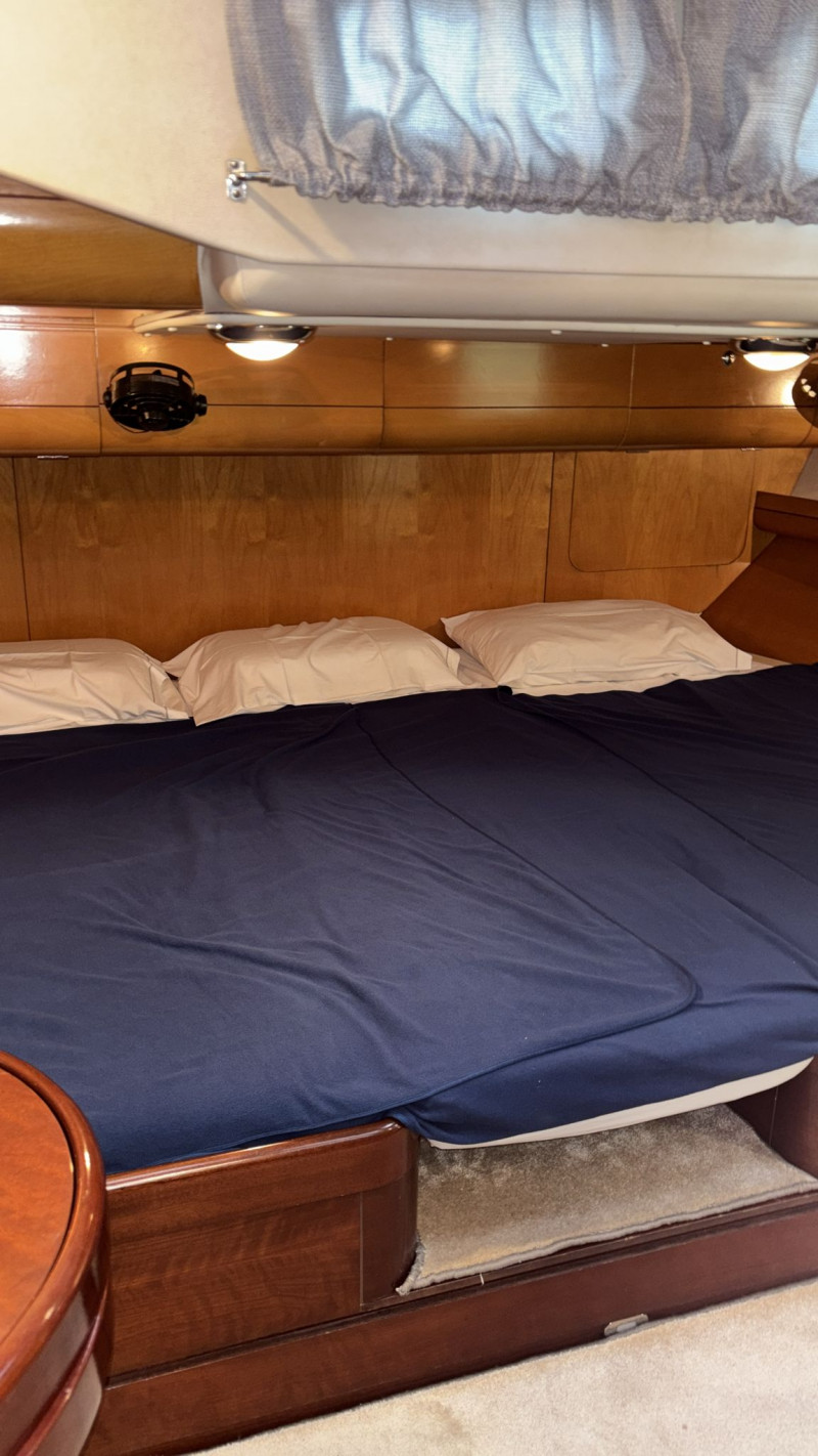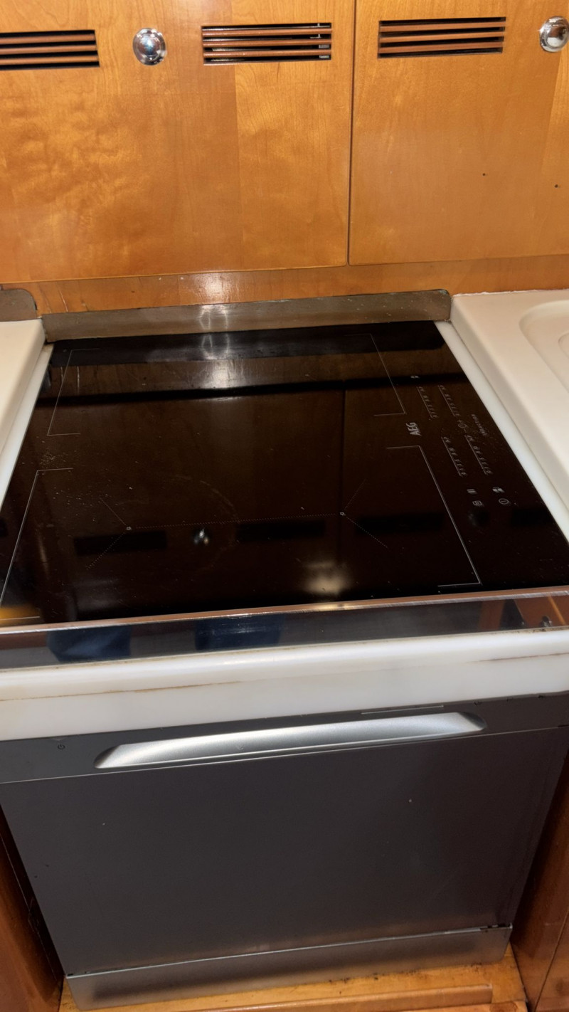 Il CNB 64 è stato sottoposto a ben due refit. Il più recente nel 2025, che ha incluso i seguenti interventi: revisione completa del sistema di propulsione del motore, così come del generatore e dell’avvolgifiocco elettrico; nuova elettronica Raymarine; nuovi quadri per l’impianto elettrico; nuovi cablaggi, comandi e TV in quadrato; nuova lavastoviglie e nuovo piano cottura a induzione; 2 nuovi winch elettrici e pompe di sentina; sostituzione del motore del salpancore e dei compressori dell’aria condizionata; sostituzione della rubinetteria e delle docce di tutti i bagni; nuovo impianto Hi-Fi; nuovo tavolo esterno. Inoltre, nel 2024 il rifacimento dell’astuccio dell’asse dell’elica e di tutte le prese a mare; la nuova trinchetta; la revisione del pistone idraulico del pilota automatico; le nuove batterie per motore, elica di prua generatore; ecc.