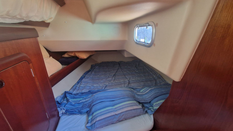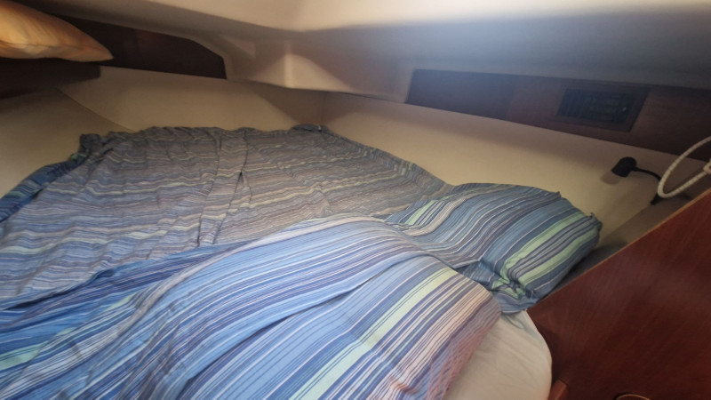 Il Grand Soleil 37 è un Cruiser-Racer progettato dallo studio Botin & Carkeek, che in questo modello è stato in grado di abbinare al meglio le prestazioni marine e le esigenze di abilità interna tipiche di un crociera-regata. Il progetto del Grand Soleil 37 riprende alcuni degli elementi più consolidati dell’IMS, come ad esempio la prua sottile con dritto verticale e ruota semiemersa, così come il baglio massimo arretrato. La ripartizione della superficie velica è estremamente equilibrata e il Grand Soleil 37 è proposto con due piani velici diversi: in versione crociera/Ims con 82 mq in bolina e spi di 86,5 mq, e inversione racing/IRC con 86 mq e spi di 95 mq. La qualità che più si apprezza in coperta è l’ergonomia, il pozzetto di ampie dimensioni consente di manovrare senza intralci e offre sei sedute comode e ben protette, l’attrezzatura di coperta è Harken. Il Grand Soleil 37 dimostra sensibilità e reattività al timone; la posizione del timoniere è molto comoda e il piano ribassato sul paraspruzzi offre una seduta ergonomica e una visuale completa dell’inferitura del genoa. Del Grand Soleil 37 esistono 2 versioni, la prima con 2 cabine e bagno dotato di vano doccia separato, la seconda con 3 cabine e una toilette più piccola, ma entrambe con volumi di stivaggi abbondanti. La spaziosa cabina di prua è provvista di letto matrimoniale largo 170 cm, due armadi contrapposti e uno spazioso disimpegno.