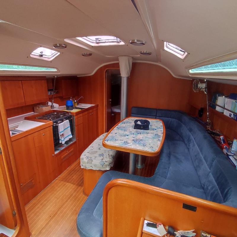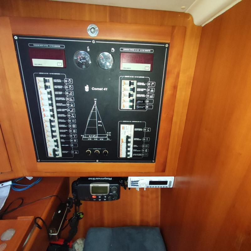 Le disposizioni, come per tradizione Comar, sono offerte con diverse soluzioni. Si parte dalla versione base, due cabine e grande bagno singolo, per arrivare a quella a tre cabine e due bagni. A prua della paratia si sviluppa la zona dedicata all’armatore: la cabina,dotata di un buon calpestio (100 cm dalla porta al letto), data la posizione arretrata rispetto alla prua offre un letto comodo e largo anche ai piedi. Il bagno interno (opzionale) ruba spazio a un armadio ma risulta comodo e regolare, irrinunciabile se si va in crociera a bordo di un Comet 41S. Di buone dimensioni anche le cabine di poppa, con letti grandi di forma regolare, e il secondo bagno che, nella versione standard a due cabine,è dotato di ampio box doccia separato.