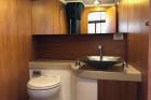 INTERNI: nonostante l’ampio pozzetto, gli interni del Comet 51 S sono ariosi e ben ripartiti. Ciò si deve alla larghezza delle sezioni che ha permesso di supplire al ridotto sviluppo longitudinale. Trovano quindi posto una comoda dinette a C con panca contrapposta e, sull’altro lato, una zona carteggio?living con due poltroncine e tavolo nel mezzo. Le cabine di poppa fruiscono a loro volta dell’ampiezza delle sezioni, con cuccette di forma regolare molto larghe in testa e sul fondo. Buona anche l’aerazione, assicurata da un boccaporto, oltre che dall’oblò rivolto verso il pozzetto. Ai piedi della scala, sulla dritta si sviluppa la cucina a L, fornita di numerosi stipetti e di un grande piano di lavoro. Sulla sinistra, la toilette di poppa, con una disposizione funzionale dei sanitari. A prua, dove i volumi tendono a stringere, si è al contrario giocato sullo sviluppo prua-poppa, con una cabina armatoriale lunga 3,70 metri e bagno interno con annessa zona doccia.