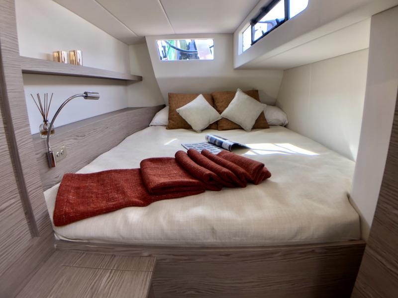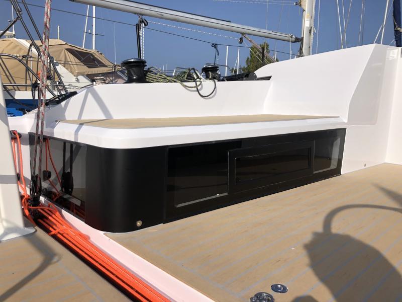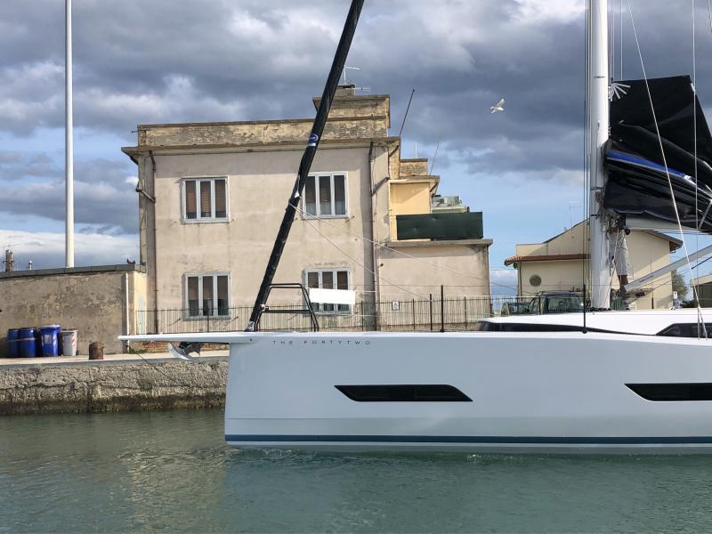 Non mancano le soluzioni originali, dalla linea del ponte con una leggera onda che ricorda quella già vista su The Fifty, alla soluzione studiata per le cabine di poppa che godono della luce naturale offerta dalla finestratura continua ricavata dalle panche del pozzetto. Uno dei punti di forza di The FortyTwo è la costruzione, la barca è realizzata con resine vinilistere ed epossidica, in infusione sottovuoto e con rinforzi in carbonio, con paratie in composito direttamente fazzolettate alla struttura, e il risultato finale è uno scafo leggero, poco più di 7 tonnellate, e rigido.