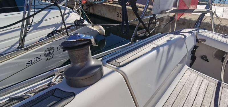 L’Etap 39S è inoltre ottimamente equipaggiato, con: pannelli solari Solbian, dissalatore, riscaldamento a gasolio in tutti gli ambienti, inverter 2000W Victron, elettronica Raymarine con possibilità di replicare tutti i dati su tablet, via Wi-Fi, direttamente dalla dinette o cabina, GPS interno ed esterno.