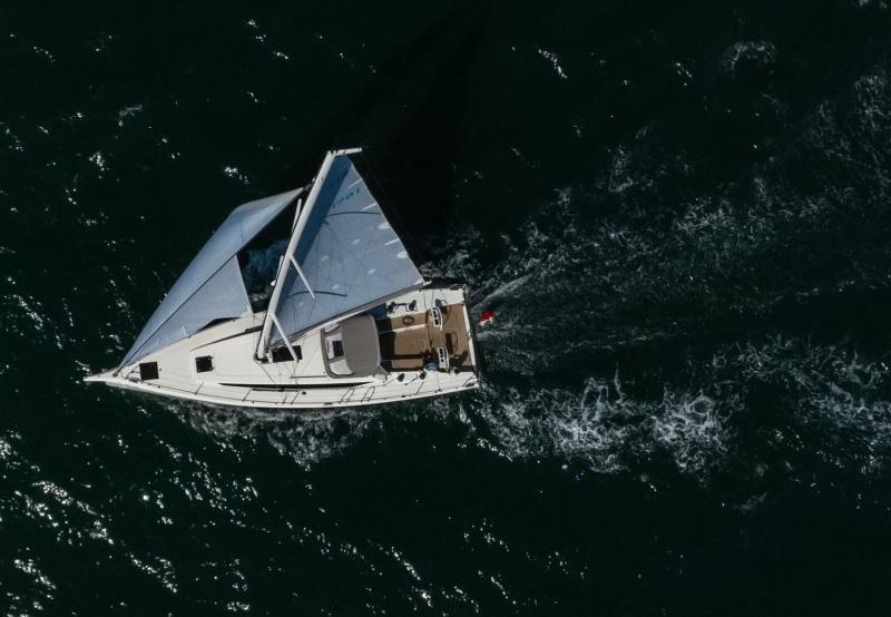 La costruzione del MORE 50 è in infusione sia per lo scafo che per la coperta, con paratie in composito e una zona centrale della struttura in acciaio Inox, che supporta i carichi di chiglia e albero. A prua è inoltre prevista una delfiniera che sostiene il braccio dell’ancora, così come i punti di mura del gennaker e del code 0, puntapiedi a scomparsa, scotta randa alla tedesca recessata sottocoperta, osteriggi e avvolgifiocco a filo ponte con finestrature dello scafo di serie.