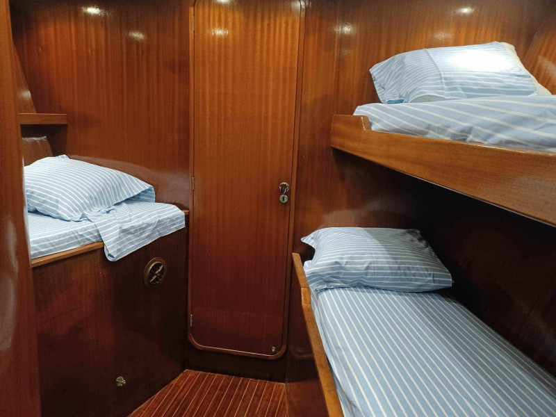 | Impianti | Impianto 12V, Impianto 220V, Boiler 220V, Boiler motore, Ancora, Generatore, Aria Condizionata, Pompa di sentina elettrica, Riscaldamento Elettrico, Salpancore di prua, Caricabatterie, Inverter |