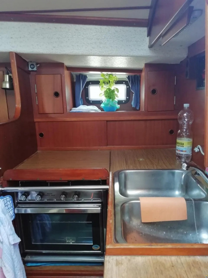 Altro modello particolarmente amato è l’Hallberg-Rassy 38, realizzata tra il 19976 e il 1977 e famosa per la sua striscia blu intorno allo scafo.