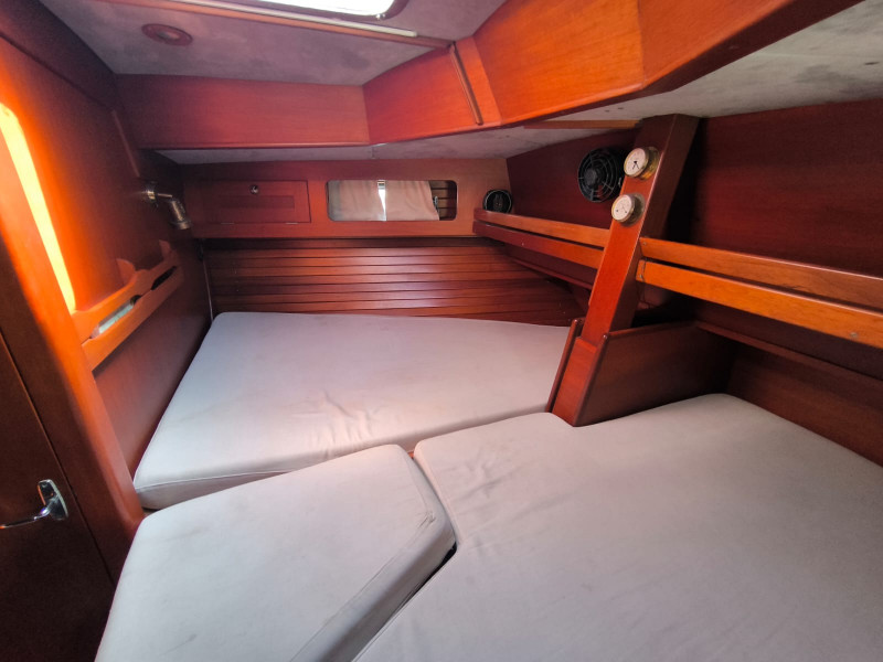 Altro modello particolarmente amato è l’Hallberg-Rassy 38, realizzata tra il 19976 e il 1977 e famosa per la sua striscia blu intorno allo scafo.