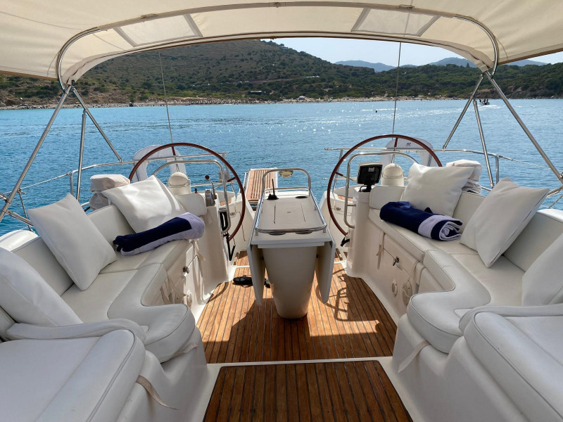 La posizione arretrata dei due winch primari consente la regolazione delle vele di prua, permettendo la conduzione di questo 17 metri a un equipaggio ridotto. Il pozzetto è invece caratterizzato da un gavone centrale e da tre zone ben distinte: una per il timoniere, una adibita alle manovre e una per il relax in navigazione.