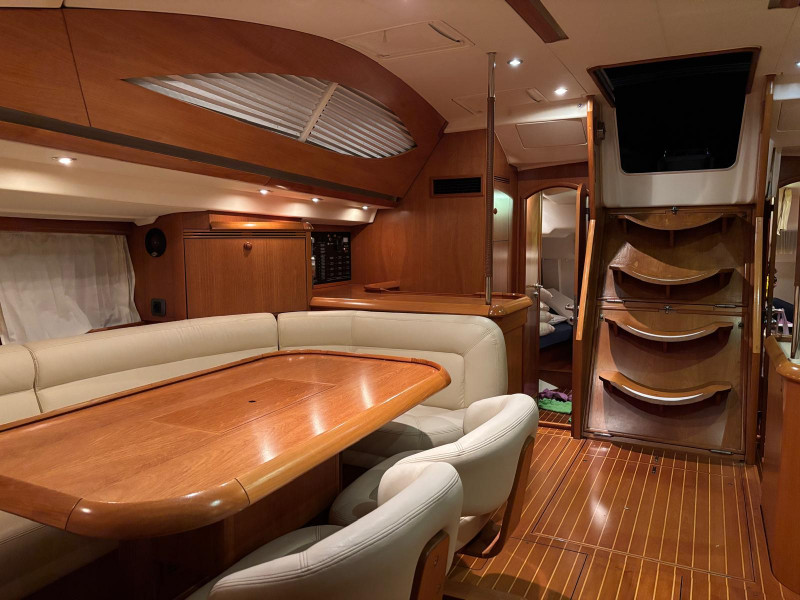 Esistono vari layout (a 3, 4 e 5 cabine); la versatilità degli interni del Sun Odyssey 54 DS è caratterizzata dalla possibilità di disporre di paratie longitudinali amovibili per trasformare le cabine matrimoniali in singole.