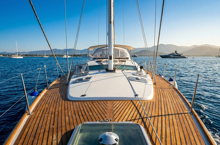 Il Sun Odyssey 54 DS riesce a coniugare ottimamente il comfort e la manovrabilità. La coperta si presenta pulita da manovre e consente ampi spazi per il prendisole e la tuga e, nonostante la conformazione a Deck-House, si raccorda ottimamente alle linee filanti dello stato.