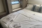 Elemento distintivo è il concept Open Space, con la porta basculante a scomparsa che unisce completamente pozzetto e salone, creando un unico ambiente continuo e luminoso. Gli spazi interni offrono un comfort superiore alla media, con salone panoramico, cucina attrezzata con frigoriferi domestici e cabine ampie con bagno privato, ideali sia per uso armatoriale che charter.