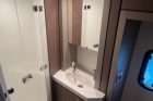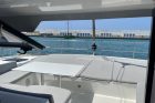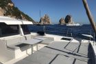 All’esterno, il flybridge è uno dei più ampi della categoria e si configura come un vero living sul mare, mentre le aree di prua e poppa garantiscono continuità e facilità di utilizzo degli spazi.